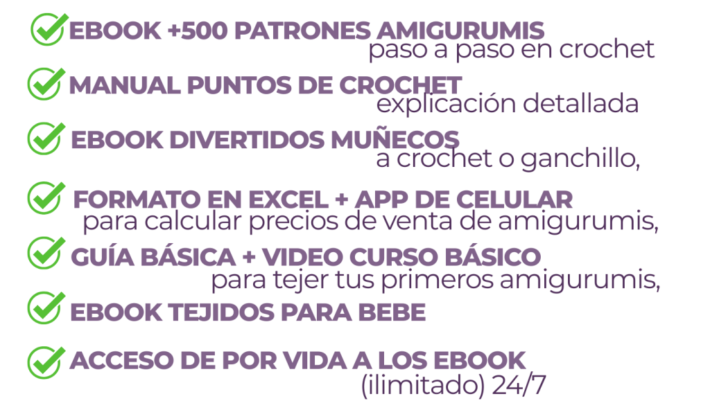 Más de 500 patrones variados, desde muñecos sencillos hasta diseños más detallados. Son ideales para hobby, regalos o ventas.